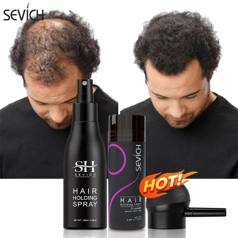 Sevich 3pcs/Lot Hair Fiber Powder+Hair Styling Spray+Nozzle Applicator Pump Keratin Hair Building Fiber Powder Hair Loss Product